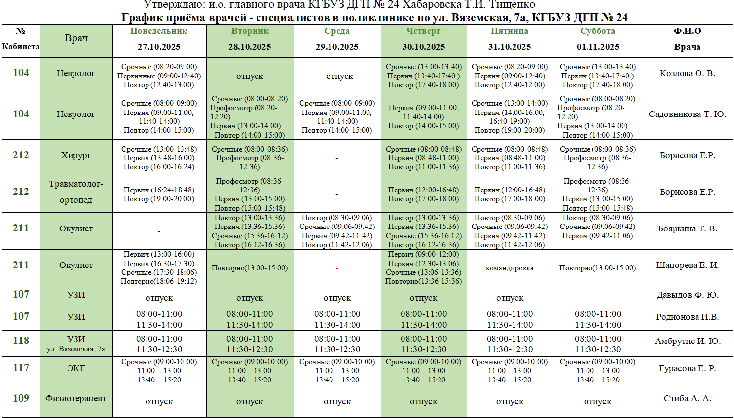 Посмотреть расписание и записаться на приём к врачу: https://uslugi27.ru/